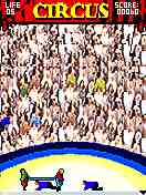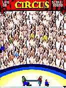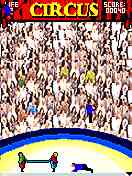 At the same time the two clowns make their way around the ring with a trampoline, helping the artists achieve their feat. The clowns should try to balance the trapeze artists on the trampoline while they perform from one swing to the next one. Now you will have to help these fellows get all the artists safely across the ring. On entering subsequent levels try to balance more than one artist simultaneously on the trampoline. Each artist safely brought across to the next swing accounts for a score point.